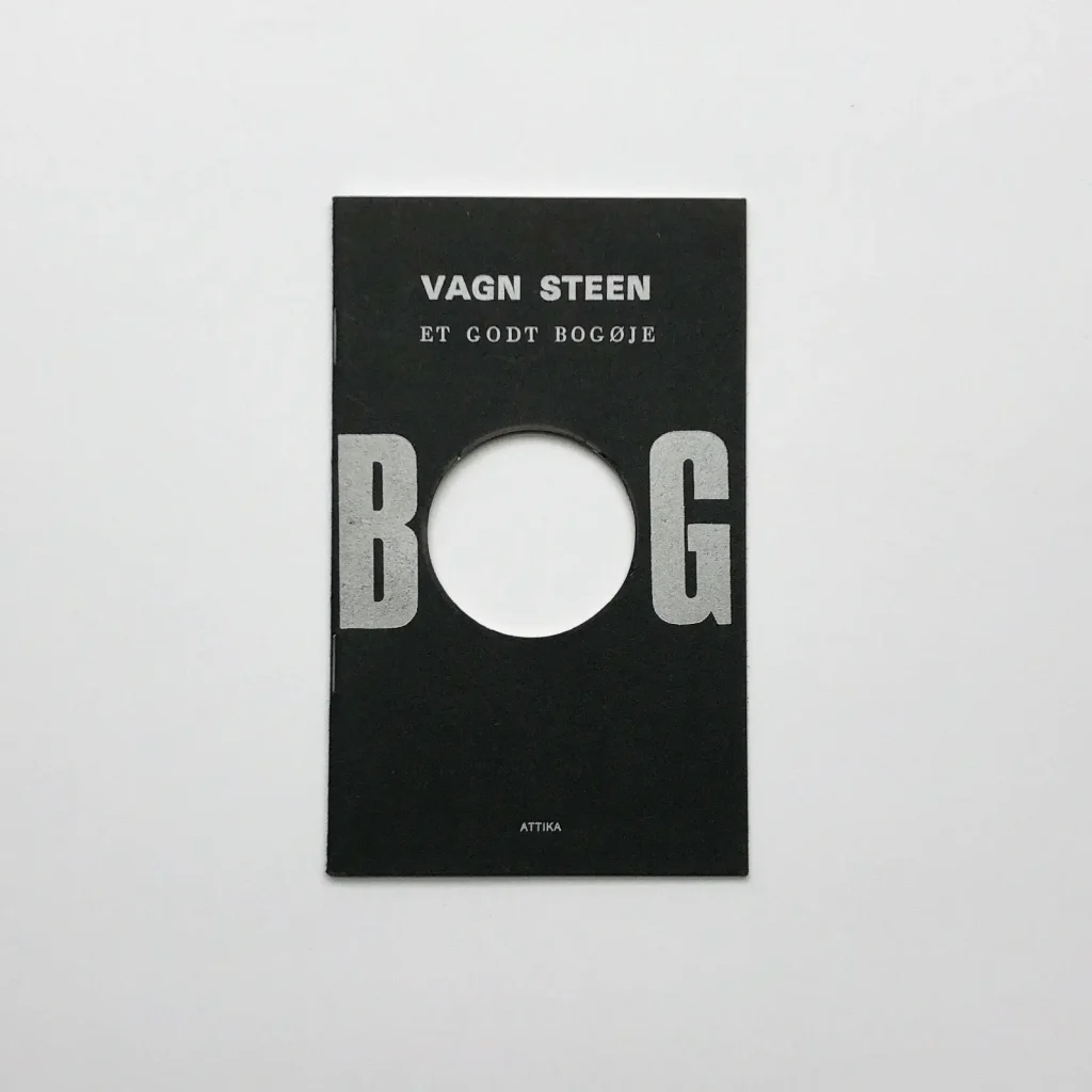 丹麥具象詩人 Vagn Steen 在1969年創作的藝術家書籍《HOLE/Et godt bogøje》是可以雙向顛倒閱讀的小冊子,兩面分別印著不同語言(其中丹麥文標題可以被翻譯成「一個好的書之眼」,或許強調了讀者的視角與頁面上洞口之間的對應關係3)。