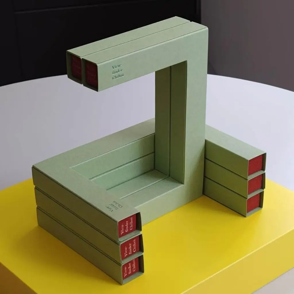 第三部作品則是將「觀景窗」概念發揮到極致,香港漫畫家智海的藝術家書籍《Viewfinder 觀景窗》。小小的書本上挖了一個逼近封面尺寸的矩形洞口,比起前幾本書以頁面作為洞口的「宿主/基地」,在此反而主客對換,頁面幾盡被吞噬,平時我們習以為常承載文字及圖像的部分都「成空」了。相信許多人會在第一時間質疑:這可以算是一本「書」嗎?就算是,又要閱讀什麼呢?