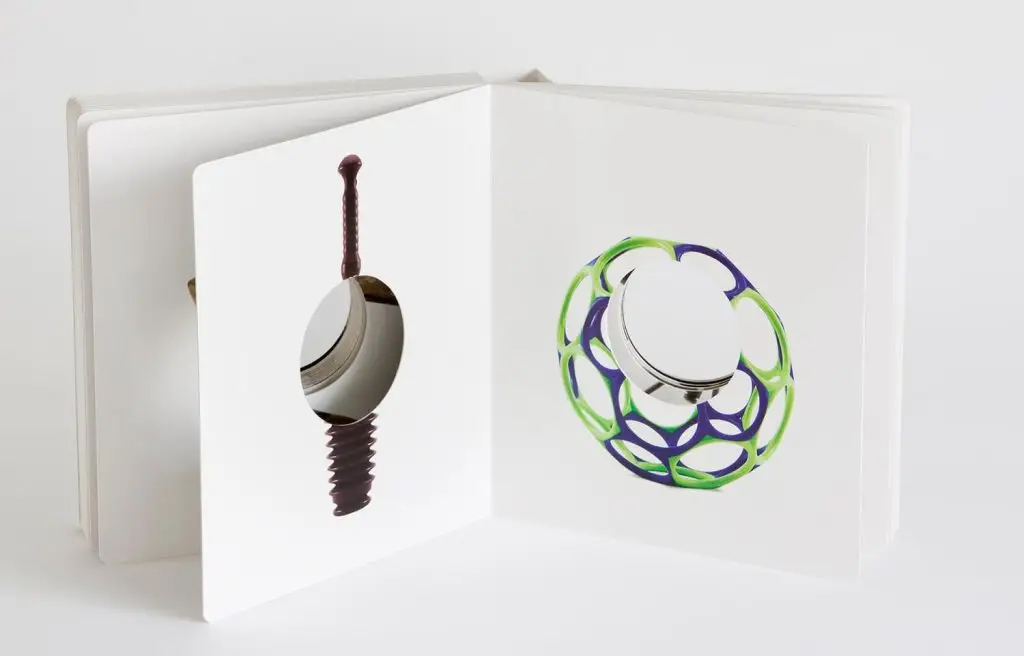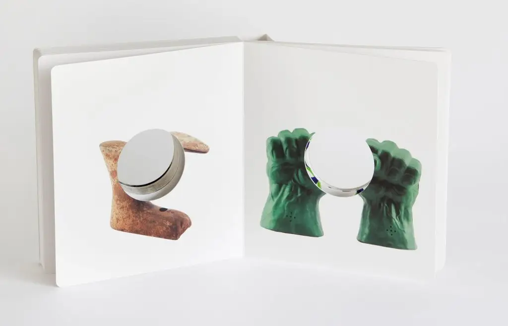 書中節選了六十一件 Steinbach 曾展出過的物件,一頁一件皆被洞口貫穿,除了封面標題及版權頁便沒有其他文字。不完整的圖像乍看似乎很阻礙閱讀,但也如同破壞掉讀者對物品的預設印象,並從空洞中引發更多聯想,一如他平時為物件製作展台的手法——以一種突如其來、不可見的新奇感震撼著我們,而這種新奇感實際上一直存在於物品中。4